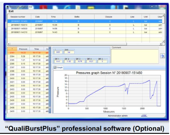 Seamless Digital Tracking: Optional QualiBurstPlus Software stores 1000 test results